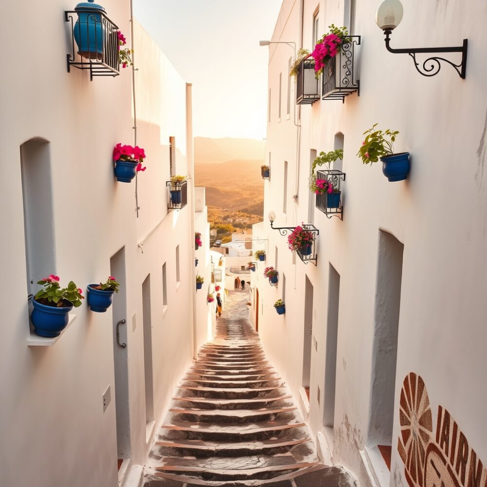 Más que perseguir un único “punto imprescindible”, lo inteligente es dejarte llevar por las vistas que aparecen al subir. Busca rincones donde el blanco y el azul se mezclan con el verde de las macetas. La fotogenia de Frigiliana está en lo cotidiano: una esquina limpia, una puerta antigua, un patio con sombra.